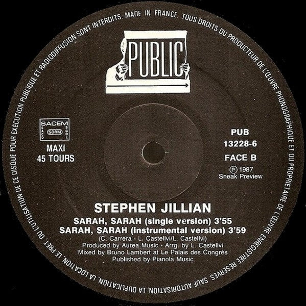 A. Sarah Sarah (Long Version) 5:40B1. Sarah Sarah (Single Version) 3:55B2. Sarah Sarah (Instrumental) 3:59