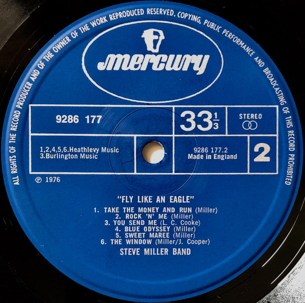 A1. Fly Like An Eagle 5:17 A2. Space Odyssey 0:40 A3. Wild Mountain Honey 4:50 A4. Serenade 3:11 A5. Dance, Dance, Dance 2:16 A6. Mercury Blues 3:44 B1. Take The Money And Run 2:47 B2. Rock'n Me 3:04 B3. You Send Me 2:40 B4. Blue Odyssey 0:53 B5. Sweet Maree 4:13 B6. The Window 4:18