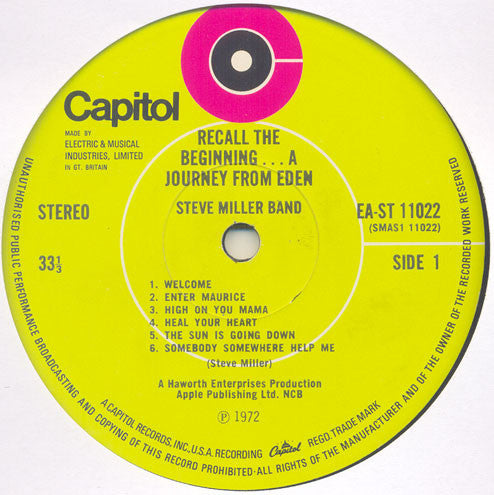 A1. Welcome 1:14 A2. Enter Maurice 3:52 A3. High On You Mama 3:35 A4. Heal Your Heart 3:20 A5. The Sun Is Going Down 1:35 A6. Somebody Somewhere Help Me 2:30 B1. Love's Riddle 3:23 B2. Fandango 4:56 B3. Nothing Lasts 4:03 B4. Journey From Eden 6:45