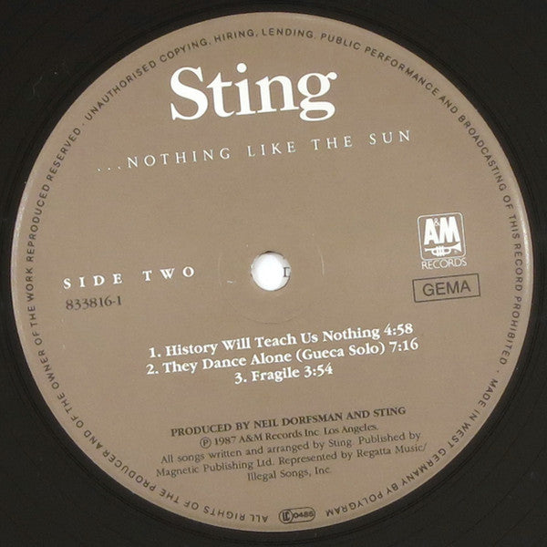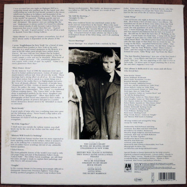 A1. The Lazarus Heart 4:34 A2. Be Still My Beating Heart 5:32 A3. Englishman In New York 4:25 B1. History Will Teach Us Nothing 4:58 B2. They Dance Alone (Gueca Solo) 7:16 B3. Fragile 3:54 C1. We'll Be Together 4:52 C2. Straight To My Heart 3:54 C3. Rock Steady 4:27 D1. Sister Moon 3:46 D2. Little Wing 5:04 D3. The Secret Marriage 2:03