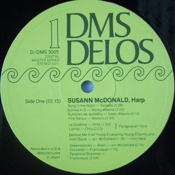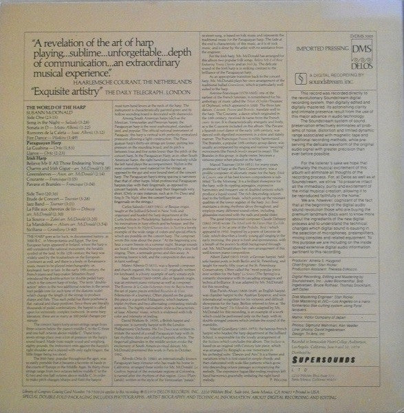 A1. Song Of The Night 3:28 A2. Sonata In D 1:22 A3. Rumore De La Caleta 3:12 A4. Fire Dance 1:49 . Paraguayan Harp A5. La Guabina 1:53 A6. Llanos (Plain Lands) 2:23 . Irish Harp A7. Believe Me If All Those Endearing Young Charms And Irish Gigue 1:18 . - A8. Greensleeves 2:14 A9. Courante 1:15 A10. Pavane Et Bransles 3:04 B1. Etude De Concert 3:28 B2. Jazz Band 3:11 B3. La Fille Aux Chevuex De Lin (The Girl With The Flaxen Hair) 2:30 B4. La Source 3:20 B5. La Mandoline 3:54 B6. Siciliana 3:40