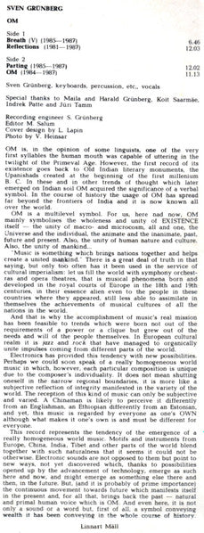Sven Grünberg - OM (LP, Album, Whi)