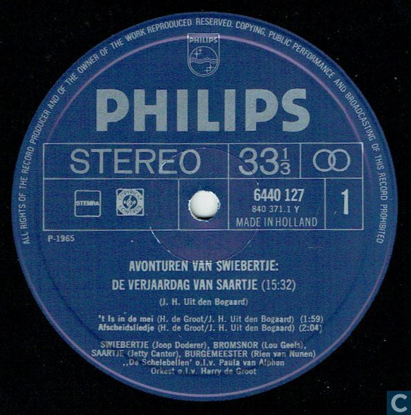 A1. De Verjaardag Van Saartje 15:32 A2. 't Is In De Mei 1:59 A3. Afscheidsliedje 2:04 B1. Op Een Mooie Lentemorgen 20:46 B2. Slaapliedje Van Annemarietje 2:59 B3. Ik Ben Een Arme Zwerver 2:20