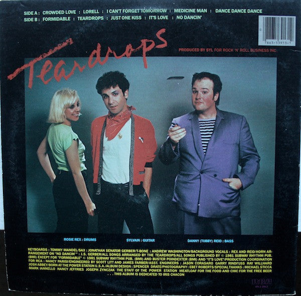 As noted on the LP label, this is a Sylvain Sylvain LP titled, "Syl Sylvain and the Teardrops." The Teardrops are NOT a band. ℗ 1981 RCA Records All songs published by Subway Rhythm Pub. (BMI) except: B1 published by Subway Rhythm Pub. and Buster Poindexter (BMI) B4 no publishing listed Labels: RCA on sleeve and RCA Victor on labels.