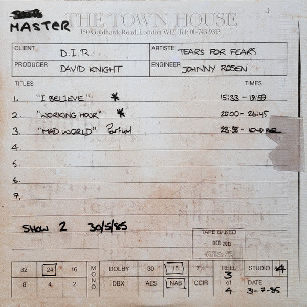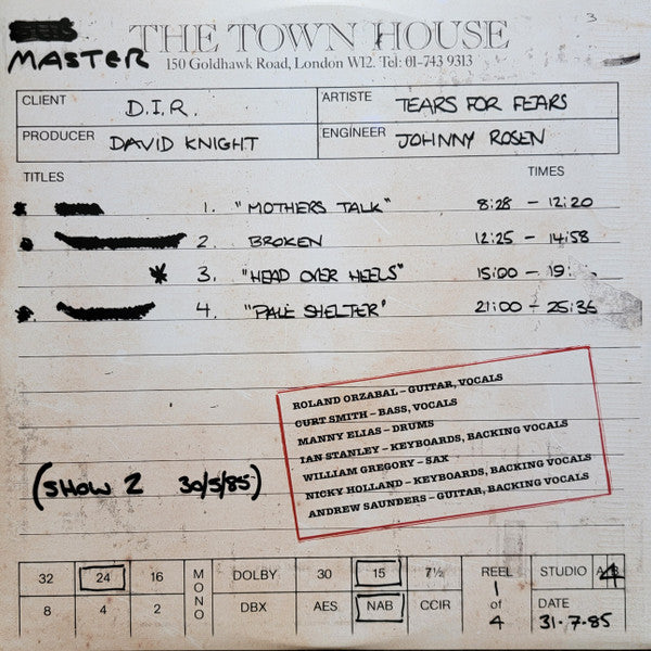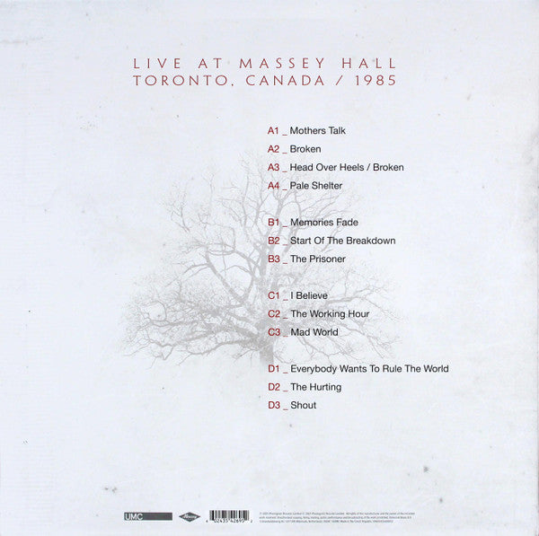 A1. Mothers Talk A2. Broken A3. Head Over Heels / Broken A4. Pale Shelter B1. Memories Fade B2. Start Of The Breakdown B3. The Prisoner C1. I Believe C2. The Working Hour C3. Mad World D1. Everybody Wants To Rule The World D2. The Hurting D3. Shout