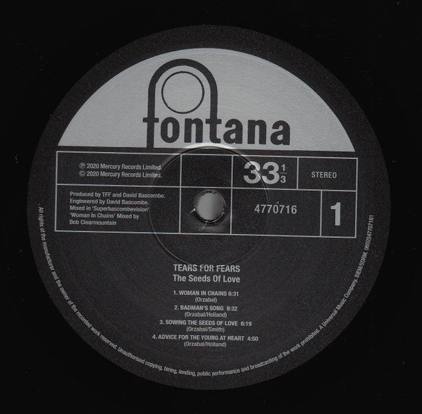 A1. Woman In Chains 6:31 A2. Badman's Song 8:32 A3. Sowing The Seeds Of Love 6:19 A4. Advice For The Young At Heart 4:50 B1. Standing On The Corner Of The Third World 5:33 B2. Swords And Knives 6:12 B3. Year Of The Knife 7:08 B4. Famous Last Words 4:26