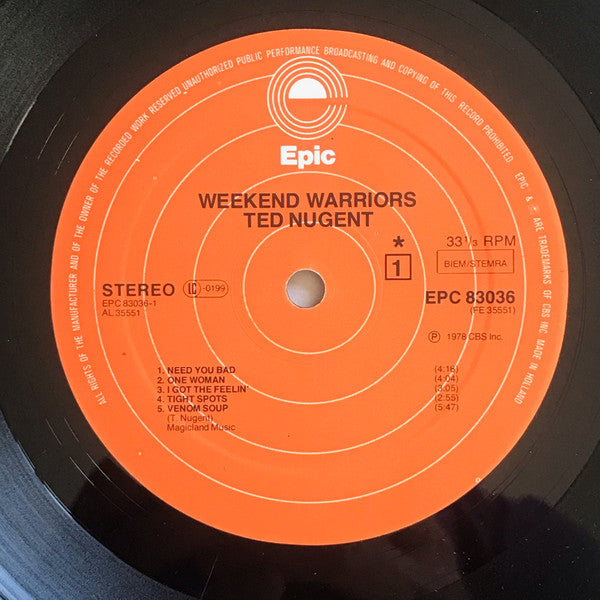 A1. Need You Bad 4:18 A2. One Woman 4:04 A3. I Got The Feelin' 3:05 A4. Tight Spot 2:55 A5. Venom Soup 5:47 B1. Smokescreen 4:12 B2. Weekend Warriors 3:06 B3. Cruisin' 3:26 B4. Good Friends And A Bottle Of Wine 4:00 B5. Name Your Poison 4:30