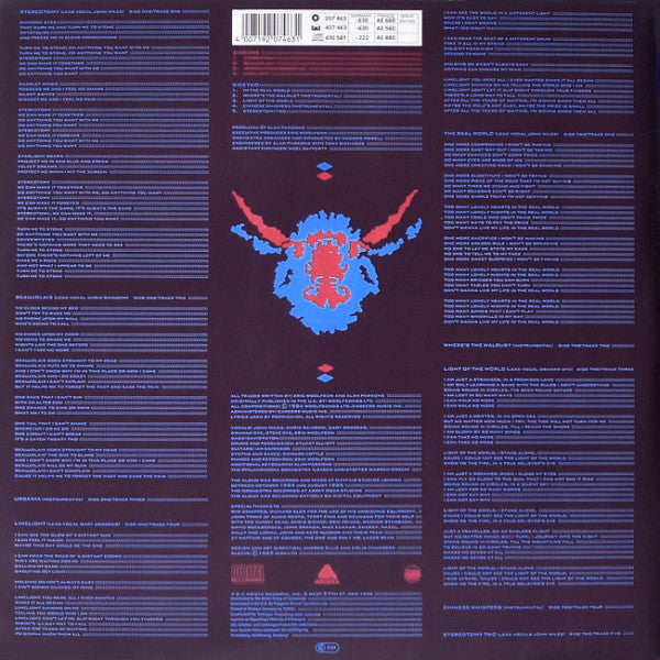 A1. Stereotomy 7:15 A2. Beaujolais 4:27 A3. Urbania (Instrumental) 4:34 A4. Limelight 4:39 B1. In The Real World 4:17 B2. Where's The Walrus (Instrumental) 7:34 B3. Light Of The World 6:22 B4. Chinese Whispers (Instrumental) 1:02 B5. Stereotomy Two 1:18