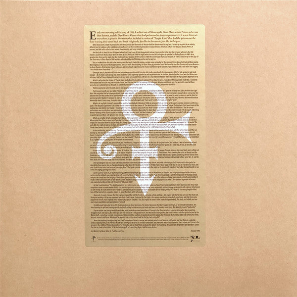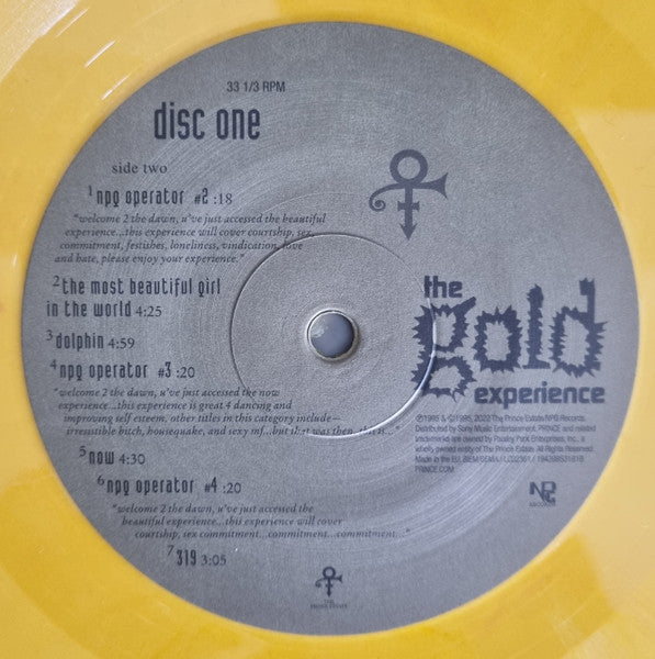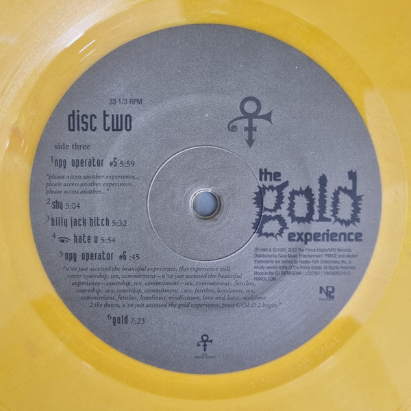Replica of the expanded, limited edition promo version of Prince's 1995 album on 2 gold LPs features "the most beautiful girl in the world," "gold," plus 5 "i hate u" remixes
