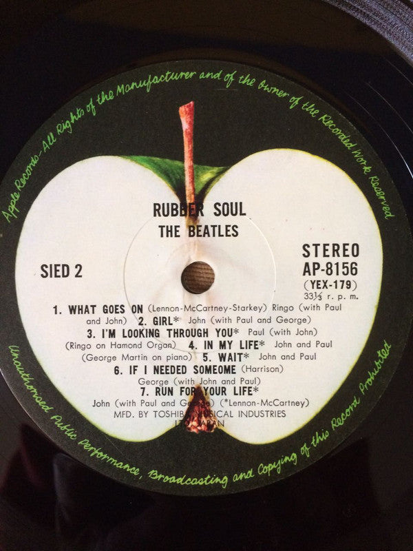 A1. Drive My Car 2:30 A2. Norwegian Wood 2:06 A3. You Won't See Me 3:32 A4. Nowhere Man 2:45 A5. Think For Yourself 2:19 A6. The Word 2:44 A7. Michelle 2:42 B1. What Goes On 2:51 B2. Girl 2:34 B3. I'm Looking Through You 2:27 B4. In My Life 2:28 B5. Wait 2:17 B6. If I Needed Someone 2:24 B7. Run For Your Life 2:19