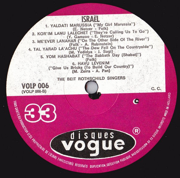 A1. Ani Ve-Shiri A2. Ellem Im Perach A3. Hagdudanim A4. Mal'oo Asamenu Bar A5. Hahelech Haboded A6. Mi Yivne B1. Yaldati Marussia B2. Kor'im Lanu Lalechet B3. Me'ever Lanahar B4. Tal Yarad La'achu B5. Yom Hashabat B6. Havu Levenim