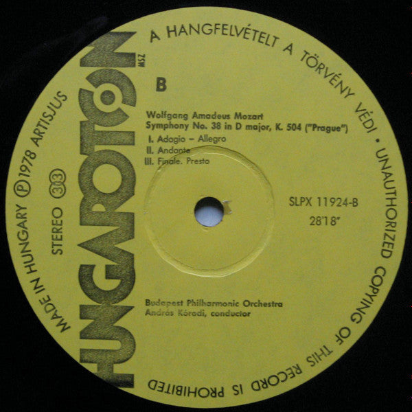 A1. I. Adagio - Allegro Spiritoso A2. II. Poco Adagio A3. III. Menuetto A4. IV. Presto . Symphony No. 38 In D Major, K.504 "Prague" B1. I. Adagio - Allegro B2. II. Andante B3. III. Finale. Presto