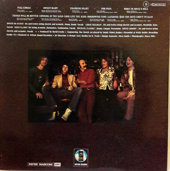A1. Full Circle 2:41 A2. Sweet Mary 2:52 A3. Changing Heart 2:40 A4. For Free 3:48 A5. Born To Rock 'N Roll 3:12 B1. Things Will Be Better 2:13 B2. Cowgirl In The Sand 3:23 B3. Long Live The King 2:14 B4. Borrowing Time 1:59 B5. Laughing 5:36 B6. (See The Sky) About To Rain 3:48
