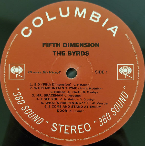 A1. 5 D (Fifth Dimension) 2:32 A2. Wild Mountain Thyme 2:29 A3. Mr. Spaceman 2:08 A4. I See You 2:31 A5. What's Happening?!? 2:30 A6. I Come And Stand At Every Door 3:01 B1. Eight Miles High 3:35 B2. Hey Joe (Where You Gonna Go) 2:08 B3. Captain Soul 2:35 B4. John Riley 2:57 B5. 2-4-2 Fox Trot (The Lear Jet Song) 2:08