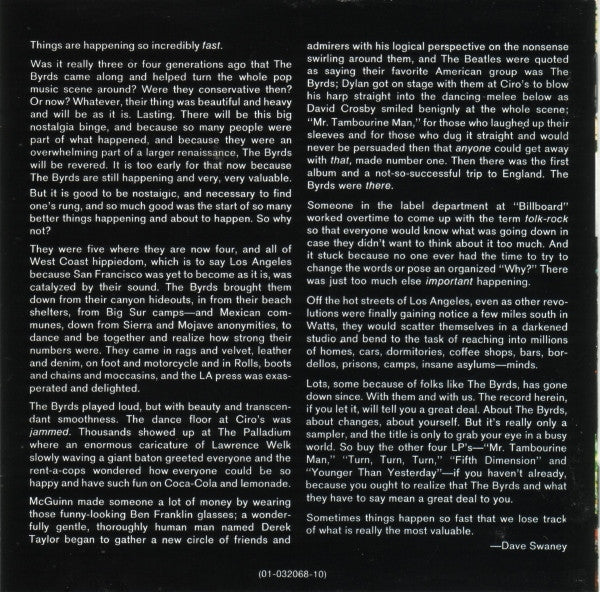 1. Mr. Tambourine Man 2:172. I'll Feel A Whole Lot Better 2:313. The Bells Of Rhymney 3:314. Turn! Turn! Turn! (To Everything There Is A Season) 3:355. All I Really Want To Do 2:026. Chimes Of Freedom 3:527. Eight Miles High 3:368. Mr. Spaceman 2:099. 5 D (Fifth Dimension) 2:3310. So You Want To Be A Rock 'N' Roll Star 2:0311. My Back Pages 3:05