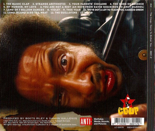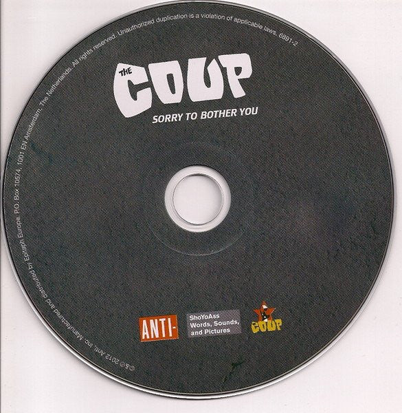 On the cover: "This album's the soundtrack to the forthcoming movie of the same name. Sorry To Bother You is a dark comedy with magical realism inspired by Boots Riley's time as a telemarketer. Screenplay by Boots Riley. Produced by Ted Hope. Directed by Alex Rivera."