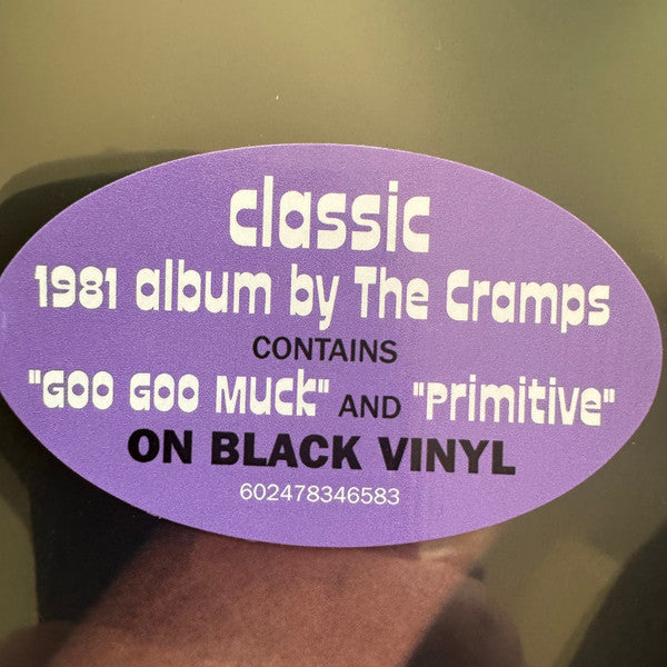 Hype sticker reads: "Classic album by The Cramps. Contains 'Goo Goo Muck' and 'Primitive'. On black vinyl. 602478346583"