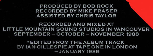 Phonographic Copyright (p) Beggars Banquet RecordsCopyright (c) Beggars Banquet RecordsPublished By Chappell Music Ltd.Edited At Tape OneRecorded At Little Mountain Sound StudiosMixed At Little Mountain Sound StudiosPressed By DamontMastered At MusitechData provided by Discogs