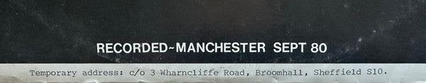 The initial first approximately 200 copies were pressed on blue vinyl in hand-made pasted sleeves. Black vinyl versions (THIS) came in standard printed sleeve. Some copies of the blue and black vinyl have printed on the rear, bottom sleeve "temporary address: c/o" before the address itself. A tiny number of these blue and black vinyl copies (with standard printed sleeve) were sent out as promos in either hand-folded and stapled versions of the heavy card PAX sleeve or in hand-folded, but inverted, sleeves from a contemporary independent label compilation album called 'East Of Croydon'. Edited by Pax Records in 1981. Recorded in Manchester in September 1980 when the band was still called 'Danse Crazy'.