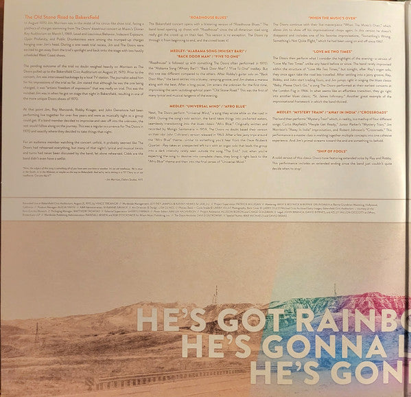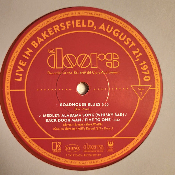 A1. Roadhouse Blues 5:50 A2. Medley: Alabama Song (Whisky Bar) / Back Door Man / Five To One 12:42 B1. Medley: Universal Mind / Afro Blue 8:31 B2. When The Music's Over 13:17 C1. Love Me Two Times 8:54 C2. Medley: Mystery Train / Away In India / Crossroads 15:32 D1. Ship Of Fools 8:32 D2. The End 15:35