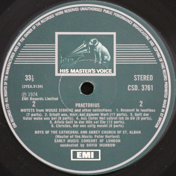 A booklet [8 pages containing an introductory essay on Praetorius by Dr. Jerome Roche, and texts and translations, is enclosed with this record.