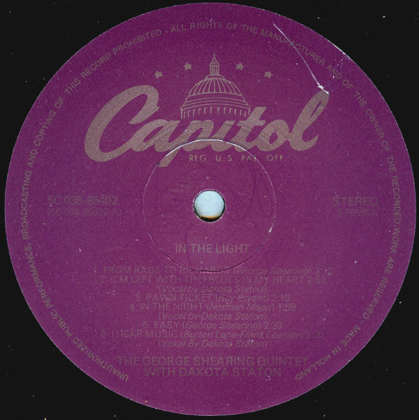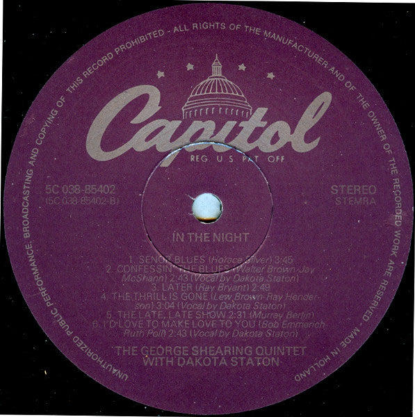 A1. From Rags To Richards 3:12 A2. I'm Left With My Blues In My Heart 2:53 A3. Pawn Ticket 2:19 A4. In The Night 1:59 A5. Easy 2:39 A6. I Hear Music 2:30 B1. Senor Blues 3:45 B2. Confessin' The Blues 2:43 B3. Later 2:49 B4. The Thrill Is Gone 3:04 B5. The Late, Late Show 2:31 B6. I'd Love To Make Love To You 2:43