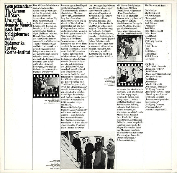 The title "In Südamerika" appears on labels and spine. The main title printed on front reads "twen präsentiert The German All Stars Live at the domicile Munich nach ihrer Erfolgstournee durch Südamerika für das Goethe-Institut".