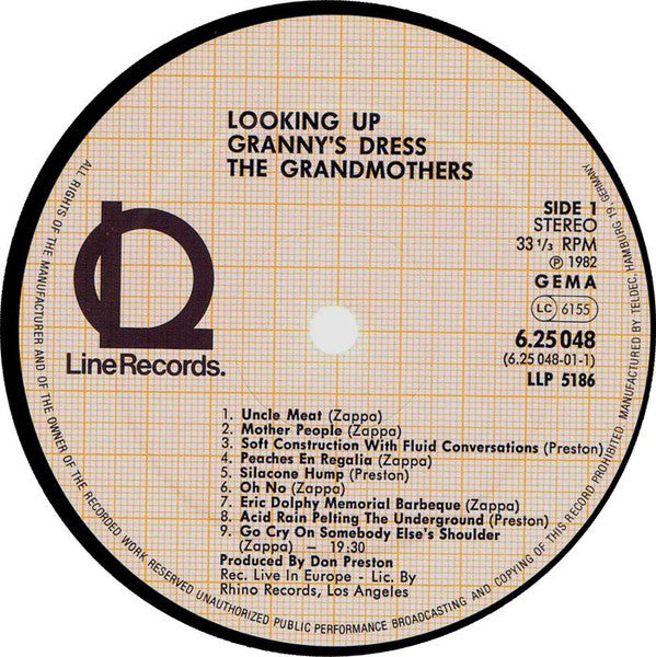The complete side one was recorded in Europe during the tour of The Grandmothers in 1981.