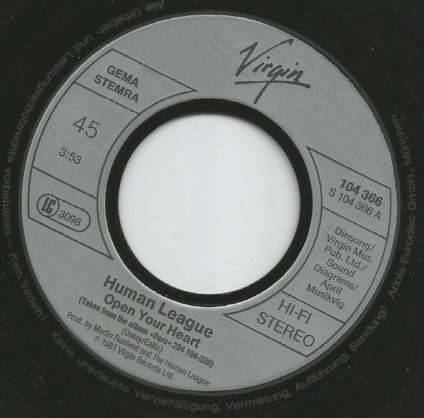℗ & © 1981 Virgin Records Ltd. Repress from 1982 A: Dinsong/ Virgin Mus. Pub. Ltd./ Sound Diagrams/ April Musikvlg. B: Sound Diagrams/ Dinsong Ltd./ April Musikvlg. Layout and Co-Ordination at A.S.
