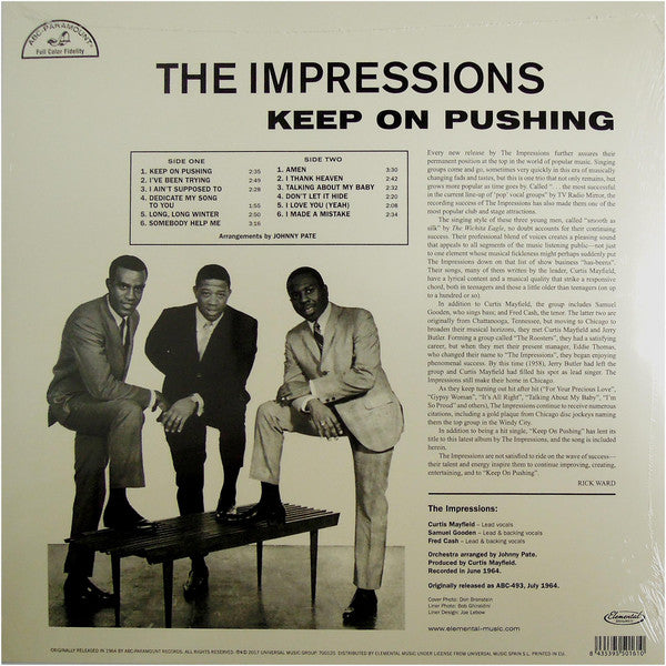 A1. Keep On Pushing 2:35 A2. I've Been Trying 2:49 A3. I Ain't Supposed To 2:28 A4. Dedicate My Song To You 1:55 A5. Long, Long Winter 2:50 A6. Somebody Help Me 3:16 B1. Amen 3:30 B2. I Thank Heaven 2:42 B3. Talking About My Baby 2:32 B4. Don't Let It Hide 2:20 B5. I Love You (Yeah) 2:08 B6. I Made A Mistake 2:34