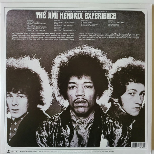 A1. Purple Haze 2:50 A2. Manic Depression 3:42 A3. Hey Joe 3:30 A4. Love Or Confusion 3:12 A5. May This Be Love 3:10 A6. I Don't Live Today 3:54 B1. The Wind Cries Mary 3:20 B2. Fire 2:43 B3. Third Stone From The Sun 6:44 B4. Foxey Lady 3:18 B5. Are You Experienced? 4:14 C1. Stone Free 3:36 C2. 51st Anniversary 3:15 C3. Highway Chile 3:32 D1. Can You See Me 2:33 D2. Remember 2:48 D3. Red House 3:50