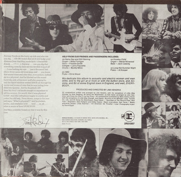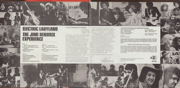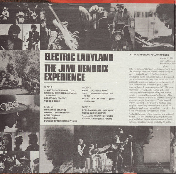 A1. .... And The Gods Made Love A2. Have You Ever Been (To Electric Ladyland) A3. Crosstown Traffic A4. Voodoo Chile B1. Little Miss Strange B2. Long Hot Summer Night B3. Come On (Part I) B4. Gypsy Eyes B5. Burning Of The Midnight Lamp C1. A Rainy Day, Dream Away C2. 1983...(A Merman I Should Turn To Be) C3. Moon, Turn The Tides...Gently Gently Away D1. Still Raining, Still Dreaming D2. House Burning Down D3. All Along The Watchtower D4. Voodoo Child (Slight Return)