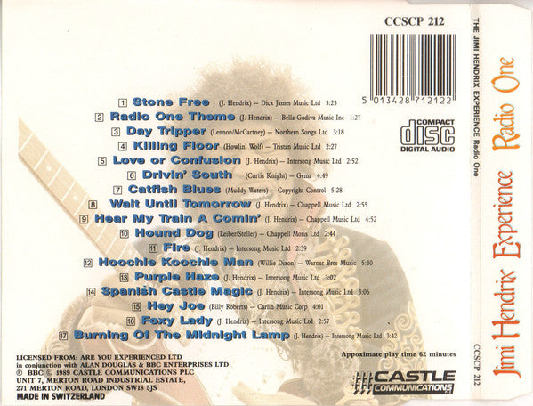 1. Stone Free 2. Radio One Theme 3. Day Tripper 4. Killing Floor 5. Love Or Confusion 6. Drivin' South 7. Catfish Blues 8. Wait Until Tommorrow 9. Hear My Train A Comin' 10. Hound Dog 11. Fire 12. Hooche Koochie Man 13. Purple Haze 14. Spanish Castle Magic 15. Hey Joe 16. Foxy Lady 17. Burning Of The Midnight Lamp