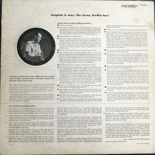 Label and jacket spine list artist as "The Jimmy Giuffre Four".