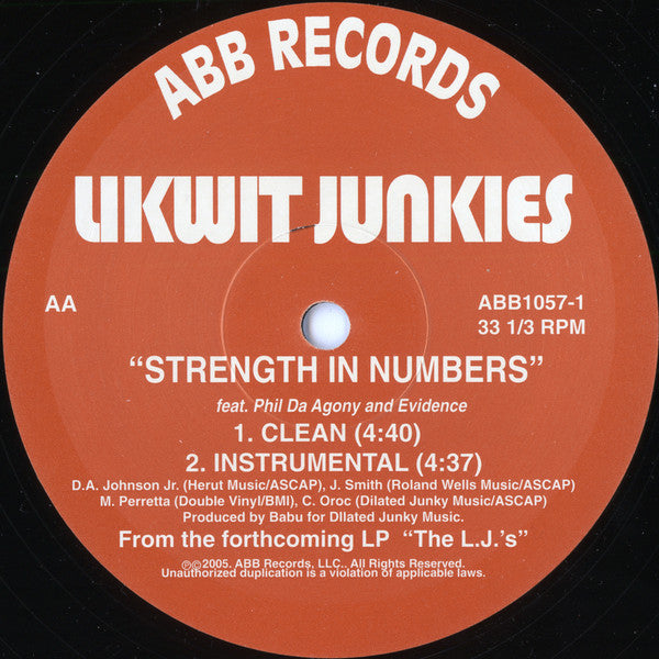 The Likwit Junkies - One Day Away / Strength In Numbers (12")