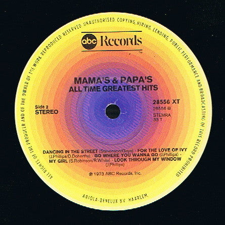 A1. California Dreamin' 2:32 A2. Dedicated To The One I Love 2:56 A3. I Call Your Name 6:03 A4. Twelve-Thirty (Young Girls Are Coming To The Canyon) 3:20 A5. Creeque Alley 3:45 B1. Dancing In The Street 3:20 B2. For The Love Of Ivy 3:40 B3. Go Where You Wanna Go 2:32 B4. My Girl 3:35 B5. Look Through My Window 3:05 C1. Monday, Monday 3:12 C2. Words Of Love 2:13 C3. Twist And Shout 2:45 C4. I Saw Her Again Last Night 2:50 C5. Dream A Little Dream Of Me 3:24 D1. People Like Us 3:23 D2. You Baby 2:15 D3. Got A Feelin' 4:01 D4. Trip, Stumble And Fall 2:35 D5. Straight Shooter 3:10