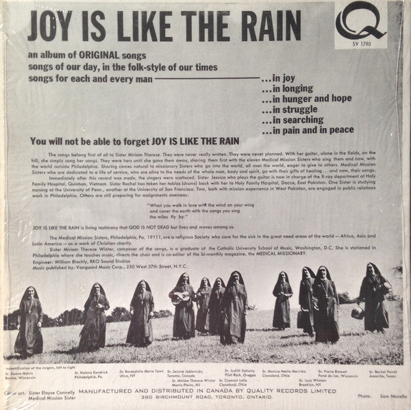 A1. Joy Is Like The Rain 2:25 A2. Zaccheus 2:56 A3. Speak To Me, Wind 2:56 A4. Come Down, Lord 2:22 A5. Spirit Of God 2:09 A6. It's A Long Road To Freedom 3:10 B1. Howl, My Soul 2:24 B2. Pilgrim Song 2:26 B3. How I Have Longed 3:01 B4. Ten Lepers 2:31 B5. God Gives His People Strength 2:22 B6. The Wedding Banquet 2:30