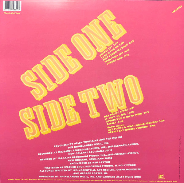 Distributed By Music On Vinyl B.V. Produced For Rhinelander Music, Inc. Manufactured By Music On Vinyl B.V. Manufactured For Warner Music Phonographic Copyright (p) Warner Bros. Records Phonographic Copyright (p) Warner Music Copyright (c) Warner Bros. Records Copyright (c) Warner Music Pressed By Record Industry Published By Rhinelander Music, Inc. Published By Cabbage Alley Music Recorded At Sea Saint Recording Studio, Inc. Remixed At Sea Saint Recording Studio, Inc. Mastered At Warner Bros. Recording Studios