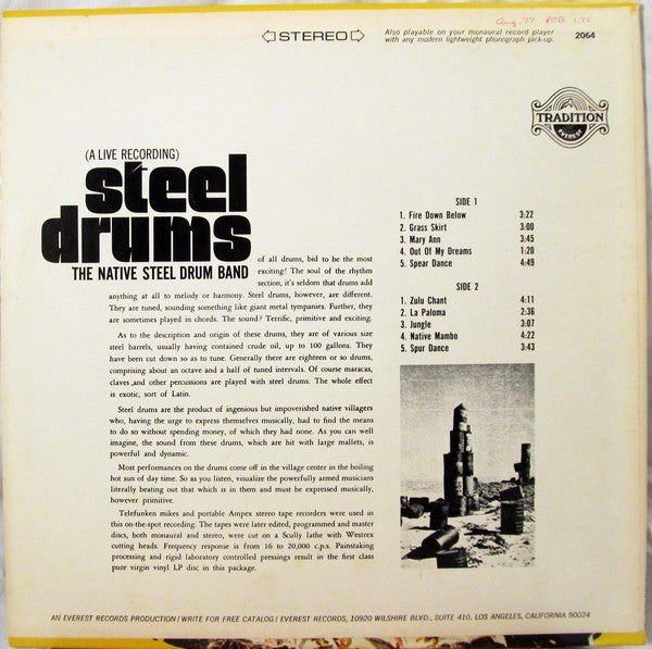 The Native Steel Drum Band - Steel Drums (A Live Recording) (LP, Album)