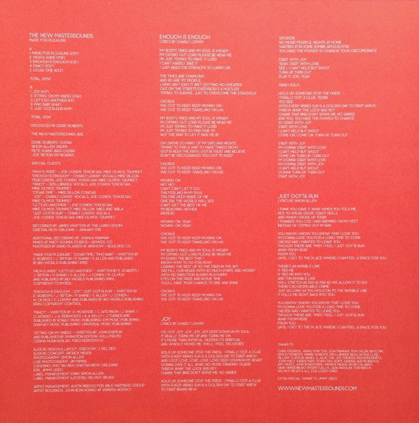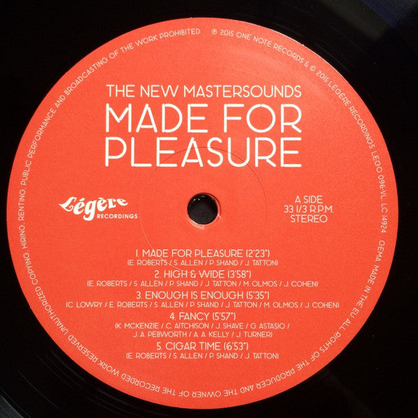 A1. Made For Pleasure A2. High & Wide A3. Enough Is Enough A4. Fancy A5. Cigar Time B1. Joy B2. Sitting On My Knees B3. Let's Do Another B4. Pho Baby B5. Just Gotta Run