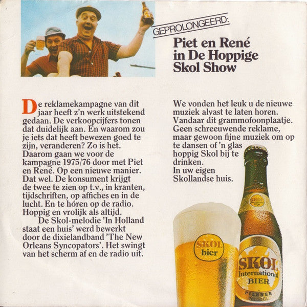 Overzicht Skol reklame-aktiviteiten 1975/76 met o.a. Piet Bambergen, René van Vooren en The New Orleans Syncopaters.