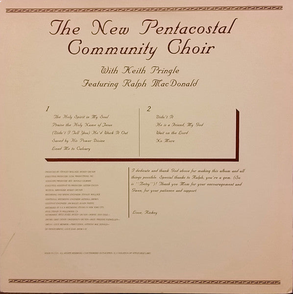 A1. Untitled 0:40 A2. The Holy Spirit In My Soul 4:34 A3. Praise The Holy Name Of Jesus 5:10 A4. (Didn't I Tell You) He'd Work It Out 3:43 A5. Saved By His Power Divine 4:29 A6. Lead Me To Calvary 3:41 B1. Didn't It 6:15 B2. He Is A Friend, My God 6:23 B3. Wait On The Lord 3:38 B4. No More 5:20 B5. Untitled 0:38