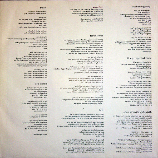 © Morrison-Leahy Music Limited Recorded at Brittania Row, Highland, Amazon and the Townhouse. ℗ 1985 Virgin Records Limited. © Virgin Records Limited. Special Thanks: Pam, Dick, Tim, Ben, Ronnie, Graham, Mike, Penny, the football monday club, Martyn Atkins and his formation motorcycle team, Marge, Marina and all the cats at 57 canning street Printed in Western Germany by TOPAC, Gesellschaft für Tonträger-Verpackung mbH, Gütersloh Imprimé en République Fédérale d'Allemagne With printed inner sleeve.