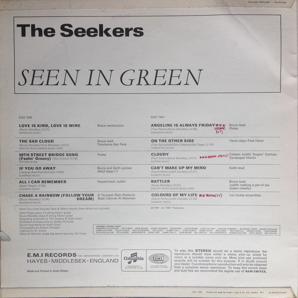 A1. Love Is Kind, Love Is Wine 2:21 A2. The Sad Cloud 3:00 A3. 59th Street Bridge Song (Feelin' Groovy) 2:19 A4. If You Go Away 4:02 A5. All I Can Remember 1:55 A6. Chase A Rainbow (Follow Your Dream) 2:28 B1. Angeline Is Always Friday 2:40 B2. When The Good Apples Fall 2:27 B3. Cloudy 2:19 B4. Can't Make Up My Mind 2:18 B5. Rattler 2:51 B6. Colours Of My Life 2:35