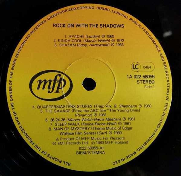 A1. Apache A2. Kinda Cool A3. Shazam A4. Quartermasters Stores A5. The Savage A6. 36-24-36 A7. Sleep Walk A8. Man Of Mystery B1. FBI B2. Nivram B3. Shadoogie B4. Stand Up And Say That B5. The Rumble B6. Bo Diddley B7. Midnight B8. Frightened City