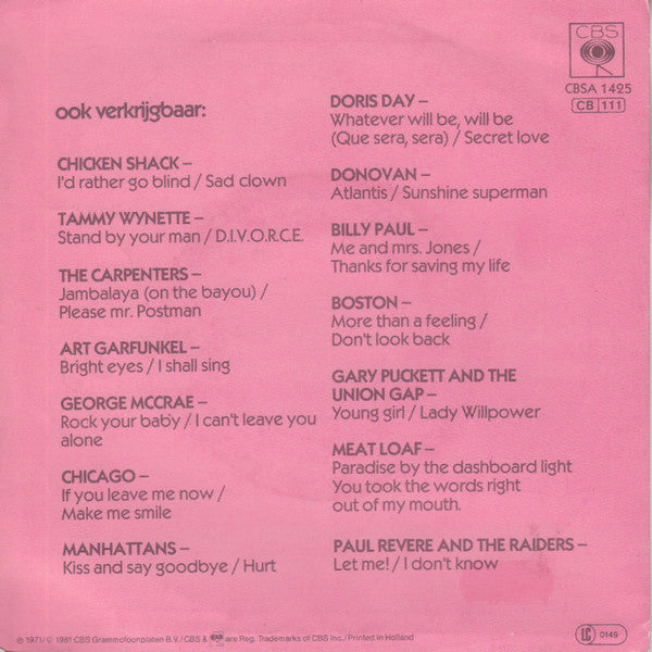 Phonographic Copyright (p) CBS Grammofoonplaten B.V.