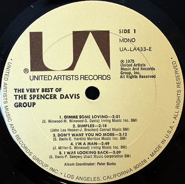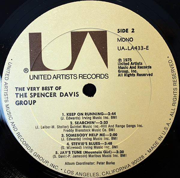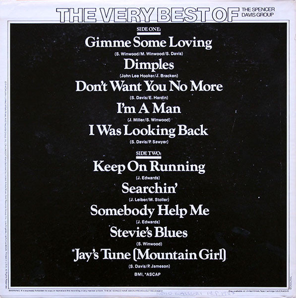 A1. Gimme Some Loving 2:51 A2. Dimples 2:18 A3. Don't Want You No More 3:12 A4. I'm A Man 2:49 A5. I Was Looking Back 3:09 B1. Keep On Running 2:44 B2. Searchin' 2:33 B3. Somebody Help Me 2:00 B4. Stevie's Blues 3:48 B5. Jay's Tune (Mountain Girl) 3:30