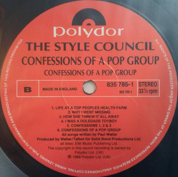 A1. It's A Very Deep Sea 5:32 A2. The Story Of Someones Shoe 3:40 A3. Changing Of The Guard 2:49 A4. The Little Boy In A Castle: A Dove Flew Down From The Elephant 3:01 A5. The Gardener Of Eden: In The Beginning / The Gardener Of Eden / Mourning The Passing Of Time 10:29 . Tokyo - Marble Arch: Confessions Of A Pop Group B1. Life At A Top Peoples Health Farm 4:18 B2. Why I Went Missing 4:43 B3. How She Threw It All Away 4:17 B4. Iwasadoledadstoyboy 4:27 B5. Confessions 1, 2 & 3 4:43 B6. Confessions Of A Pop Group 9:26
