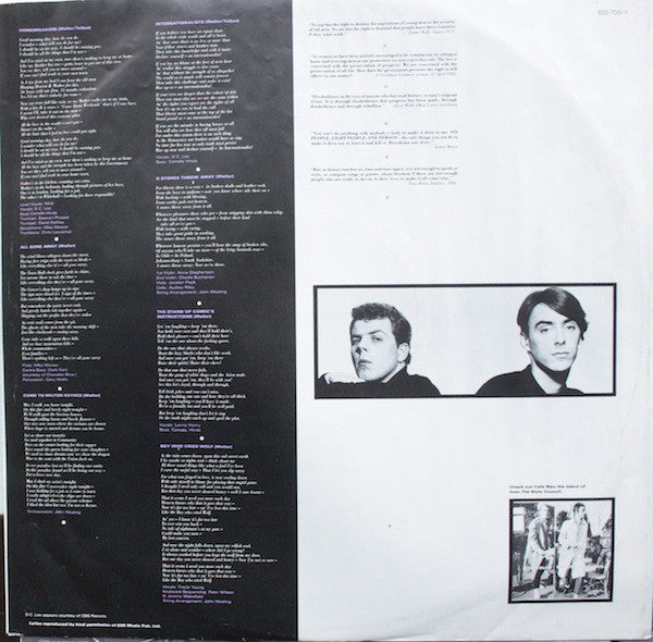 A1. Homebreakers 5:04 A2. All Gone Away 2:13 A3. Come To Milton Keynes 3:02 A4. Internationalists 3:04 A5. A Stones Throw Away 2:15 A6. The Stand Up Comic's Instructions 1:28 A7. Boy Who Cried Wolf 5:07 B1. A Man Of Great Promise 2:30 B2. Down In The Seine 2:41 B3. The Lodgers (Or She Was Only A Shopkeeper's Daughter) 3:54 B4. Luck 2:32 B5. With Everything To Lose 3:45 B6. Our Favourite Shop 2:52 B7. Walls Come Tumbling Down! 3:11