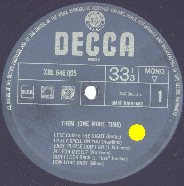 A1. Here Comes The Night A2. I Put A Spell On You A3. Baby, Please Don't Go A4. All For Myself A5. Don't Look Back A6. How Long Baby B1. Richard Cory B2. Philosophy B3. One More Time B4. Don't Start Crying Now B5. One Two Brown Eyes B6. Half As Much (It Won't Hurt)